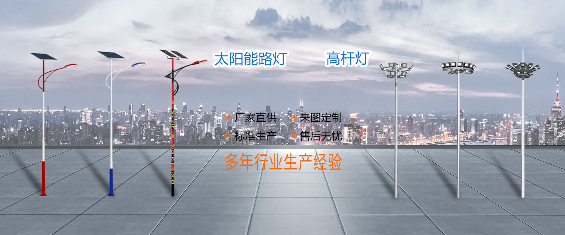 本公司主要生產(chǎn)室外道路、廣場(chǎng)、車(chē)站、港口、機(jī)場(chǎng)、學(xué)校、工廠(chǎng)、住宅小區(qū)及室內(nèi)工礦照明燈具。品種有:太陽(yáng)能路燈、智慧路燈、LED路燈、高桿燈、交通信號(hào)燈、交通標(biāo)志牌、監(jiān)控桿、龍門(mén)架、道路護(hù)欄、組合燈、球場(chǎng)燈、庭院燈、草坪燈、LED洗墻燈、線(xiàn)條燈、投光燈等,以及配套使用的恒流源電器,同時(shí)生產(chǎn)光控、時(shí)控開(kāi)關(guān)箱電器、戶(hù)外照明全系列產(chǎn)品等。